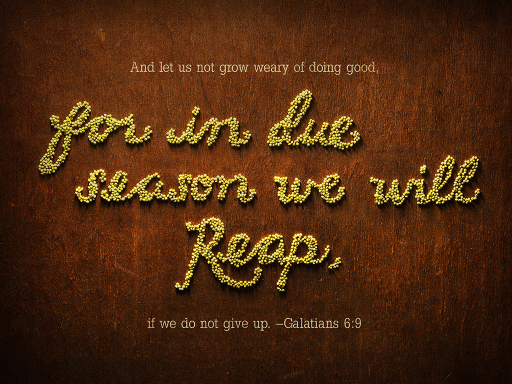9 And let us not grow weary of doing good, for in due season we will reap, if we do not give up.