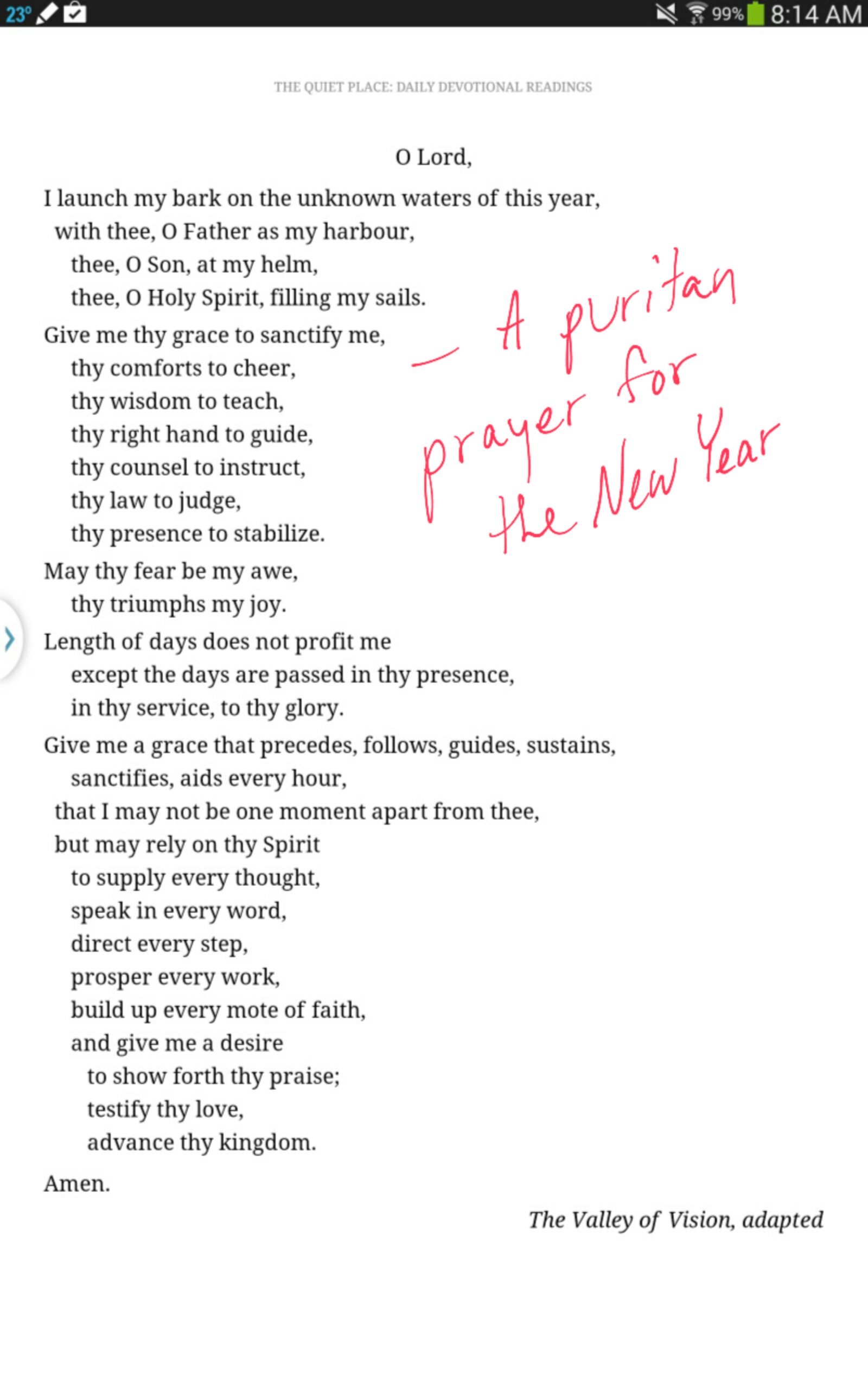 December 31, 2013 Fran Trascritti Devotional, discipline, Jesus From my devotion: A Puritan Prayer for the New Year Share this: Click to share on X (Opens in new window) X Click to share on Facebook (Opens in new window) Facebook Click to share on LinkedIn (Opens in new window) LinkedIn Click to email a link to a friend (Opens in new window) Email Click to print (Opens in new window) Print More Click to share on Reddit (Opens in new window) Reddit Like Loading...